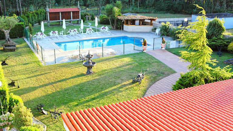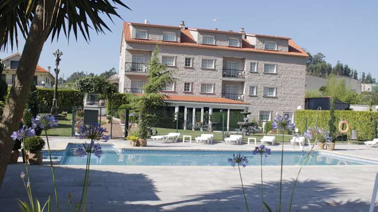 Erleben Sie einen unvergesslichen Aufenthalt im Hotel San Carlo, das inmitten der malerischen Weinberge des Tals Del Salnés in der Provinz Pontevedra liegt. Hier können Sie die Schönheit der kunstvoll gestalteten Gärten genießen, sich im Außenpool erfrischen und die entspannte Atmosphäre auf der Terrasse oder in der Bar erleben. Das Hotel bietet kostenfreie Privatparkplätze und WLAN in allen Bereichen. Die hellen Zimmer sind komfortabel eingerichtet und einige bieten einen eigenen Balkon mit herrlichem Blick auf die umliegenden Gärten, den Pool oder die Weinberge. Nutzen Sie die Gelegenheit, die umliegenden Wanderwege zu erkunden oder den Golfplatz Meis in nur 10 km Entfernung zu besuchen. Die beliebten Orte Sanxenxo und O Grove sind ebenfalls leicht erreichbar und die Insel La Toja erreichen Sie mit dem Auto in nur 20 Minuten.