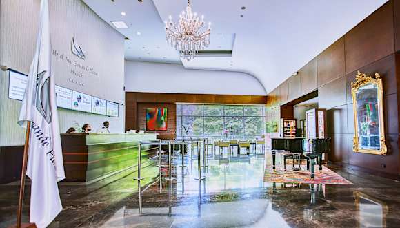 Das Hotel San Fernando Plaza ist ein luxuriöses Hotel im exklusiven Finanz- und Geschäftsviertel El Poblado in Medellin. Hier erwartet Sie ein beheizter Außenpool, ein Fitnesscenter und komfortable Unterkünfte. Genießen Sie das hauseigene Restaurant und die Bar sowie den 24-Stunden-Zimmerservice. Entspannen Sie sich im Wellnessbereich mit Massagen, Sauna und türkischen Bädern. Das Hotel bietet auch kostenpflichtige Parkplätze und einen Shuttleservice zum Flughafen.