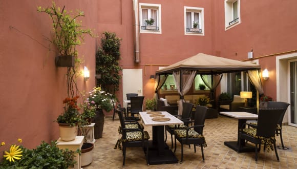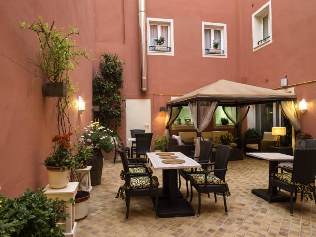 Die 16 Zimmer des Hotels verteilen sich auf 3 Etagen und sind über einen Aufzug erreichbar. Die Zimmer verfügen über eine Klimaanlage, Heizung und eine Terrasse. Zur Ausstattung gehören außerdem ein Queensize-Bett, ein Safe, eine Minibar, ein Schreibtisch, eine Tee-/Kaffeemaschine und kostenfreies WLAN. Im Badezimmer finden Sie eine Dusche, eine Badewanne, ein Bidet, einen Haartrockner und Bademäntel. Rollstuhlgerechte Zimmer sind auf Anfrage buchbar.