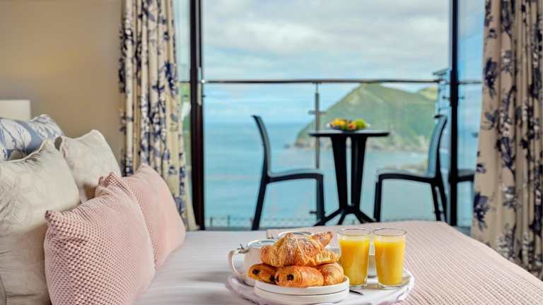 Das Hotel Sandy Cove befindet sich auf einer Klippe in North Devon und bietet einen beeindruckenden Blick auf das Meer. Es liegt direkt neben dem abgelegenen Broadsands Beach und in der Nähe weiterer schöner Strände.