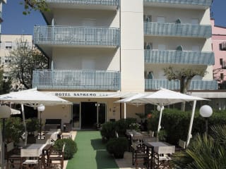 Das Hotel Sanremo, ein gemütliches und familiäres Haus, liegt in einer sehr ruhigen und zentralen Lage, 20 Meter vom Meer entfernt ohne Zwischenstrasse und 100 Meter von dem hundertjährigen Pinienwald. Der Landkreis Ravenna liegt im Nordosten der italienischen Halbinsel, ca. 80 km von Bologna entfernt, der Hauptstadt des Landes Emilia Romagna. In Bologna liegt auch der wichtigste Flughafen "Guglielmo Marconi", ca. 90 km von Ravenna entfernt. Vom Flughafen kommend, kann man Cervia Milano Marittima bequem im Auto erreichen (die gesamte Streche ist Autobahn) oder mit dem Zug, wobei mit einer Fahrtzeit zwischen 1 und 2 Stunden zu rechnen ist. Weitere Flughäfen, wie der "Giacomo Ridolfi" von Forlì, der ca. 30 km von Cervia Milano Marittima entfernt liegt, und der "Miramare" von Rimini, ca. 40 km entfernt, sind in weniger als 1 Autostunde von Ravenna aus erreichbar. Die großen Flughäfen von Mailand "Malpensa " und "Linate" sind in 4 Stunden auf der Autobahn erreichbar; der römische Flughäfen "Leonardo da Vinci" in 5 Stunden und der venezianische "Marco Polo" in ca. 2 Stunden. Die schnellsten Verbindungen nach Cervia Milano Marittima bestehen jedoch im Straßen und Autobahnnetz. Wenn man aus Richtung Norden kommt, kann man entweder die Autobahn Nr.1 (del Sole) oder die Nr.21 (Turin-Piacenza) oder die Nr.22 (Brennerautobahn) nutzen; die beiden letzeren verbinden sich in Piacenza und Modena mit der Autobahn Nr.1, die ihrerseits in Bologna an die Nr.14 (Adriatica) Anschluß hat. Einmal auf der Nr.14 wählt man dann die Ausfahrten Ravenna, Forlì, oder Cesena.