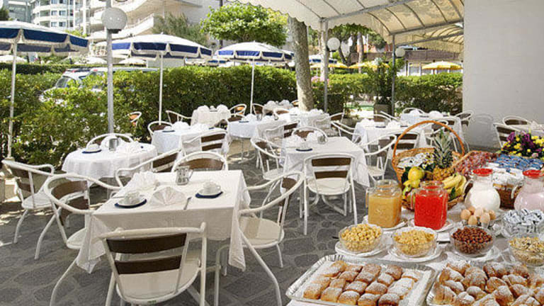 In der überdachten Veranda bzw. im Garten wird das Frühstück-Buffet serviert und im Speisesaal wird die persönlich von unserer Familie speziell zusammengestellte Küche mit regionalen, italienischen und internationalen Spezialitäten zum Genuss. Die Gäste können unser reichhaltiges Gemüse- und Salat-Buffet, die noch selbstgemachte Pasta, die abwechslungreichen Fischgerichte und vielseitigen Desserts geniessen. Für uns ist selbstverständlich, dass unsere Küche immer schmackhaft und leicht ist. Das Menù à la carte mit 3 Gängen macht für jeden Gast die täglich Auswahl leicht. Kostenlos am Tischsind die Getraenke: Wasser, Wein und Säfte. Die Gäste, die etwas Spezielles möchten, können unter einem grossen Angebot von romagnolischen und italienischen Weinen wählen. Auch für unsere jüngsten Gäste erfüllen wir gerne spezielle Wünsche.