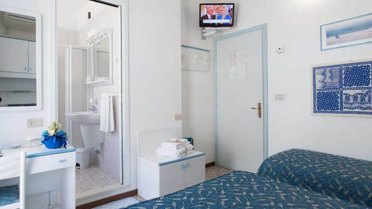 Die Atmosphäre und die Empfindungen eines komfortablen Zimmers am Meer mit einem spektakulären Balkon mit Meerblick. Das Zimmer bietet allen Komfort, den Sie sich wünschen: Klimaanlage, eigenes Bad (Dusche, WC, Haartrockner), Sat-TV, Safe, WLAN-Zugang, Ventilator.