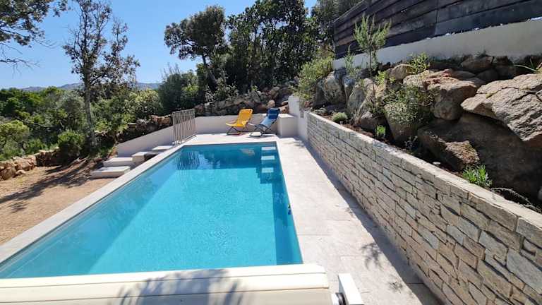 Verbringen Sie einen traumhaften Urlaub in der Villa Santa in Porto-Vecchio. Das Ferienhaus bietet einen saisonalen Außenpool, einen schönen Garten und eine Terrasse mit herrlichem Meerblick. Genießen Sie kostenloses WLAN und spielen Sie eine Runde Tischtennis. Das klimatisierte Ferienhaus verfügt über 2 Schlafzimmer, ein geräumiges Wohnzimmer und eine voll ausgestattete Küche. Handtücher und Bettwäsche werden gestellt und ein kontinentales Frühstück wird täglich serviert. Nutzen Sie den Kinderspielplatz und die Grillmöglichkeiten für entspannte Stunden im Freien. Der Strand Santa Giulia ist nur 2 km entfernt und der Hafen von Porto Vecchio erreichen Sie nach 7,4 km. Der Flughafen Figari ist nur 21 km entfernt.