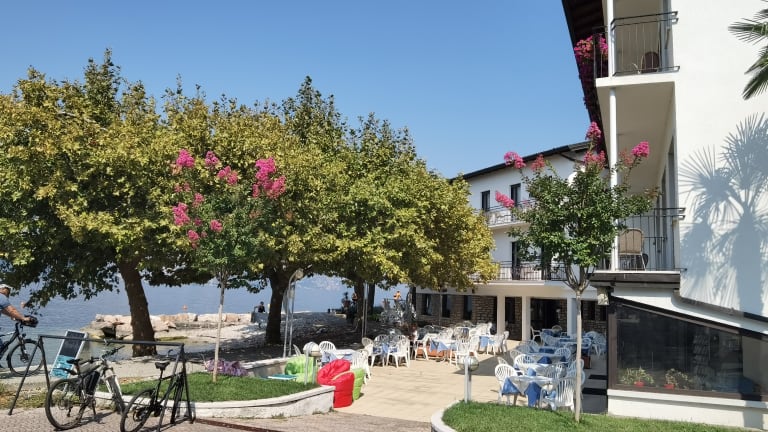 Seit 1956 können Sie mit dem Hotel S. Maria, die am Ufer des Gardasees und am Fuße des Monte Baldo liegen, einen fantastischen Urlaub in dieser Ecke des Paradieses verbringen. Außerdem können Sie am See entspannen, eine herrliche Aussicht genießen und haben gleichzeitig in der Nähe seine vielen sportlichen Aktivitäten: Segeln, Surfen, Kiten und Sup, in der vom Hotel veranstalteten Gardasurf-Schule. Ebenfalls in der Nähe gibt es Spaziergänge und Nordic Walking auf den vielen Wegen von Brenzone und Monte Baldo, Radtouren auf dem Rad-Fußgängerweg am See oder auf niedrigen Bergpfaden mit Seeblick. Auch die Möglichkeit Tennis, Paddel usw.. in nahe gelegenen Sportzentren. In den Hotel der Familie Bertoncelli können Sie verschiedene Dienstleistungen in Anspruch nehmen, die Ihren Aufenthalt während Ihres Urlaubs am Gardasee verschönern. Ausgehend von den Annehmlichkeiten wie dem großen Privatparkplatz oder dem Anlegesteg direkt am hoteleigenen Privatstrand, aber auch den Dienstleistungen im Catering-Bereich mit einem großen Speisesaal und einer Strandbar mit einer großen Terrasse am See. Um den Entspannungsservice abzurunden, können Sie den schönen Innenpool und mit einer Ergänzung die Entspannungssauna genießen.