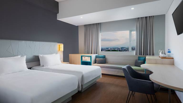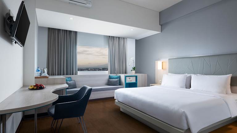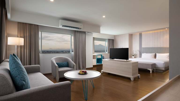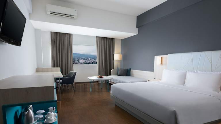 Das Hotel Santika Bogor verfügt über 153 Zimmer, die allen Ansprüchen gerecht werden. Die Zimmer sind klimatisiert und verfügen über eine Minibar, einen Safe und kostenfreies WLAN. Zur weiteren Ausstattung gehören ein Fernseher, ein Tee-/Kaffeekocher und ein eigenes Badezimmer mit Dusche oder Badewanne. Hausschuhe und ein Haartrockner sind ebenfalls vorhanden.