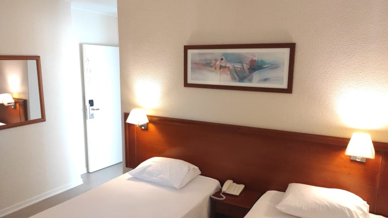 Room facilities No matter the purpose of your visit, feeling comfortable in your room, having the right surroundings to relax and reload is utmost important. Here is an overview of minimum facilities found in the rooms followed by a list of our room types at Hotel São Mamede Free Wi-Fi Aircondition TV Blackout curtains Hairdryer Safe box (on the reception) Desk and chair Bathtub or shower Telephone Iron (on request)