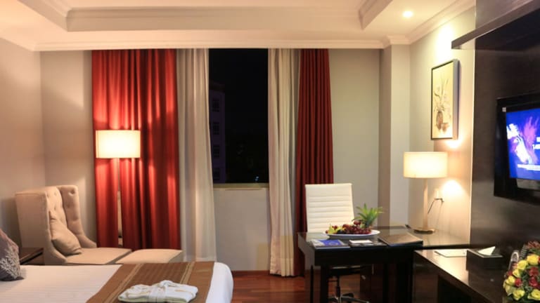 Das Saro Maria Hotel verfügt über 96 Zimmer, die alle mit einem Flachbild-Sat-TV ausgestattet sind. Einige Zimmer verfügen auch über einen Sitzbereich zum Entspannen. Zur Ausstattung gehören auch ein Wasserkocher und ein eigenes Bad mit Dusche. Kostenfreie Pflegeprodukte und Hausschuhe sind ebenfalls vorhanden.