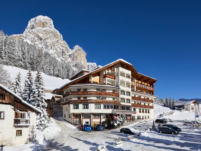 Das Hotel Sassongher in Corvara ist eine ideale Wahl für alle, die einen erholsamen und komfortablen Skiurlaub in einer ruhigen und dennoch zentralen Lage suchen. Es bietet geräumige und gut ausgestattete Zimmer, ein ausgezeichnetes Restaurant und einen erstklassigen Wellnessbereich, der perfekt zum Entspannen nach einem anstrengenden Tag auf der Piste ist.