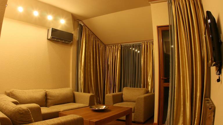 Die stilvollen Zimmer im Savaneti Eco Hotel sind in neutralen Farben gehalten und mit modernen Möbeln und hochwertigen Stoffen ausgestattet. Jedes Zimmer verfügt über Annehmlichkeiten wie einen Flachbild-TV, eine Minibar und kostenfreie Pflegeprodukte. Die kompakten Unterkünfte bieten den Gästen einen gemütlichen Rückzugsort nach einem ereignisreichen Tag.