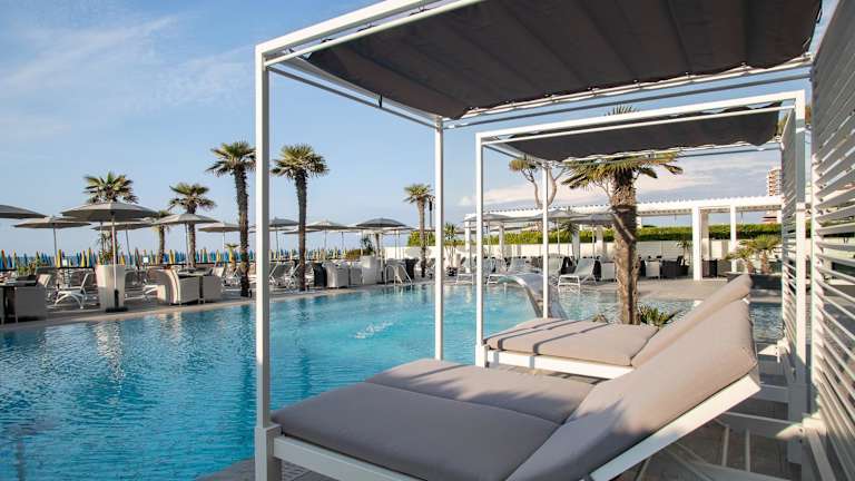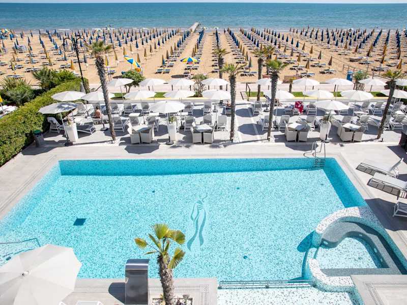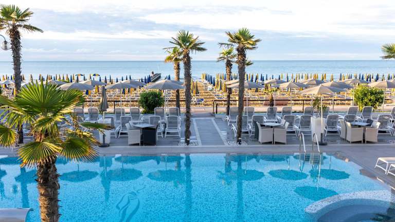 Das Hotel Sayonara befindet sich direkt am Strand von Lido di Jesolo. Von hier aus haben Sie einen wunderschönen Blick auf die Adria und können den Strand direkt vor der Tür genießen. Die Anlegestelle für Boote nach Venedig befindet sich ebenfalls in unmittelbarer Nähe. Die Autobahn A4 ist leicht zu erreichen, sodass Sie bequem Ausflüge in die Umgebung unternehmen können.