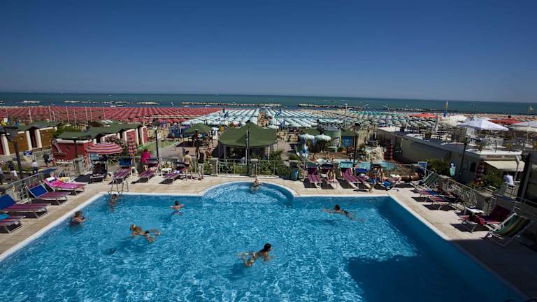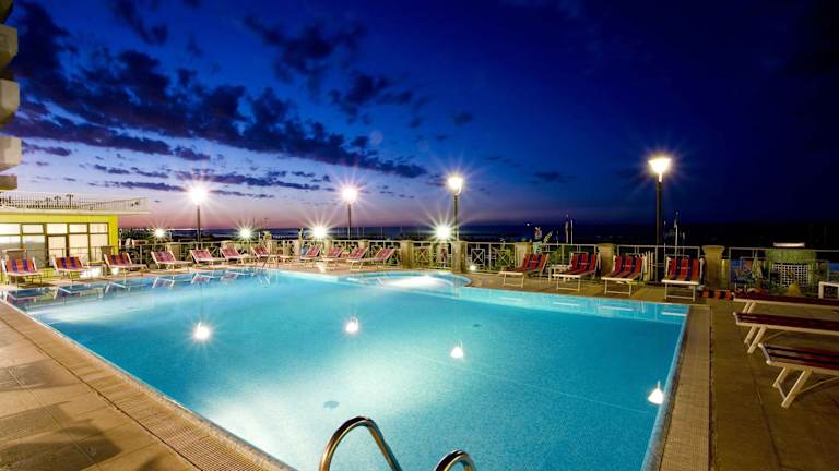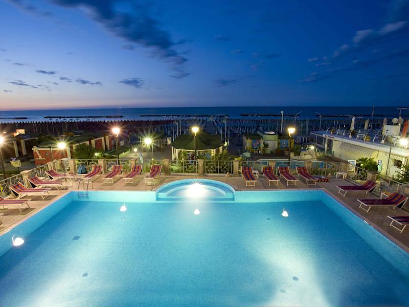 Das Hotel Sayonara in Cattolica bietet einen komfortablen Aufenthalt mit eigenem Strand, klimatisierten Zimmern, einem beheizten Außenpool und kostenfreien Leihfahrrädern. Genießen Sie typische Gerichte der regionalen Küche im Restaurant und entspannen Sie im beheizten Whirlpool. Die jüngsten Gäste werden den Kinderspielplatz und den Miniklub lieben. Das Hotel liegt in der Nähe des Bahnhofs und des internationalen Flughafens Rimini Federico Fellini.