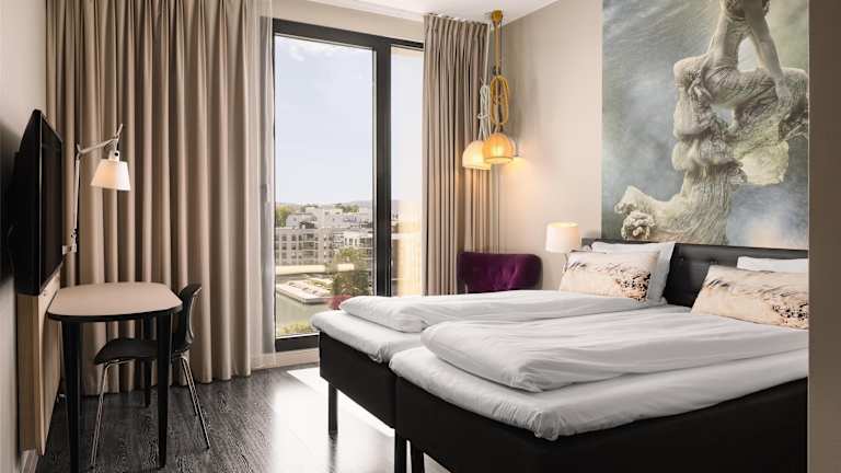 Das Scandic Fornebu liegt in der Nähe der Natur und bietet eine Vielzahl von Outdoor-Aktivitäten für jeden Geschmack. Von hier aus haben Sie einen atemberaubenden 180-Grad-Blick auf den Oslofjord und können Strände, Wanderwege und die Unterwasserwelt in unmittelbarer Nähe erkunden. Die Umgebung eignet sich auch ideal für Beachvolleyball, Windsurfen und Golf im Indoor-Golfzentrum von Fornebu. Das Hotel befindet sich in der Nähe der Telenor Arena, so dass Sie nach einem Konzert oder einer Veranstaltung bequem zurück zum Hotel gehen können. Mit dem Auto erreichen Sie das Bygdøy-Viertel in nur 10 Minuten, wo Sie das Polarschiff Fram, das Wikingerschiffsmuseum, das norwegische Heimatmuseum und das Seefahrtsmuseum besuchen können. Das Stadtzentrum von Oslo ist nur 10 Autominuten entfernt und das größte Einkaufszentrum Norwegens, das Sandvika Storsenter, erreichen Sie in 15 Minuten.