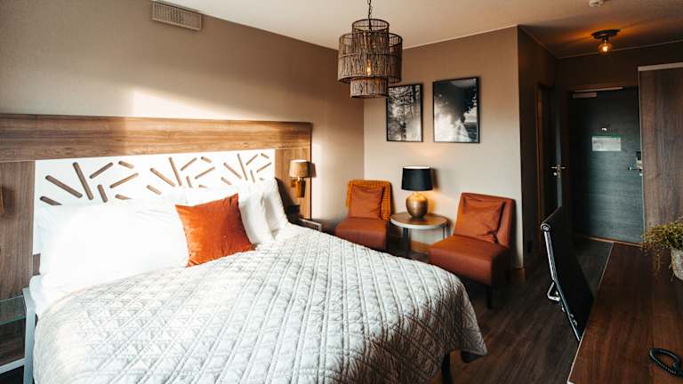 Die Zimmer im Hotell Östersund sind gemütlich eingerichtet und verfügen über einen Sitzbereich und einen Schreibtisch. Einige Zimmer bieten zudem einen atemberaubenden Blick auf den See Storsjön und die umliegenden Berge. Zur Ausstattung gehören auch ein Flachbild-Sat-TV und kostenfreies WLAN.