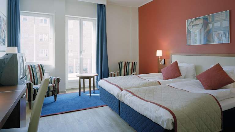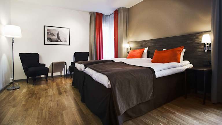 Das Scandic Karlstad City Hotel verfügt über 145 Nichtraucherzimmer, die modern und komfortabel eingerichtet sind. Zur Standardausstattung gehören eine Klimaanlage, ein Fernseher und ein eigenes Bad. Ein Zustellbett und eine Minibar sind gegen Gebühr erhältlich. WLAN ist in den öffentlichen Bereichen kostenlos verfügbar. Es stehen auch rollstuhlgerechte Zimmer zur Verfügung.