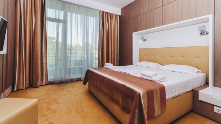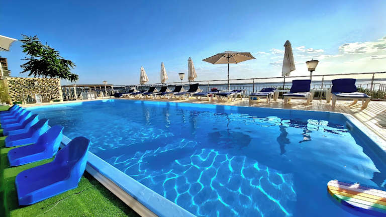 Das Hotel Scandinavia Mamaia liegt direkt am Ufer des Sees Siutghiol und bietet einen atemberaubenden Blick auf die umliegende Natur. Der Ferienort Mamaia ist bekannt für seine schönen Strände und das pulsierende Nachtleben. In der Nähe des Hotels finden Sie auch Einkaufsmöglichkeiten, Restaurants und Unterhaltungsmöglichkeiten. Der internationale Flughafen Constanța ist nur eine kurze Autofahrt entfernt, so dass Sie bequem an- und abreisen können.