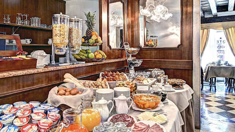 Das Hotel Scandinavia - Relais bietet Ihnen einen charmanten Aufenthalt in einem der ältesten Gebäude der Stadt Venedig. Genießen Sie den Luxus antiker Möbel und luxuriöser Materialien in den komfortablen und klimatisierten Zimmern. Die zentrale Lage ermöglicht es Ihnen, die Sehenswürdigkeiten der Stadt, wie die Rialtobrücke und den Markusdom, bequem zu erreichen.