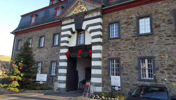 I/ Lage und Umgebung Ein Hotel in einem Schloss, das älter als sein Ort ist. Das ist das Wellnesshotel, das sich in einem umgebauten Schloss von 1093 im schönen Ort Burgbrohl im Landkreis Ahrweiler in Rheinland-Pfalz befindet. Burgbrohl feierte kürzlich seinen 900. Geburtstag und wurde erstmal 1112 urkundlich erwähnt. Das ehemalige Schloss hat eine bewegte Geschichte hinter sich und war unter anderem schon Sitz eines Männerordens. 2009 erwarb der heutige Schlossherr das Anwesen, ließ es aufwendig restaurieren und zu einem Wellnesshotel umbauen. Gelegen auf einer Anhöhe in einem romantischen Seitental des Rheins, begegnen sich im Hotel Barock und Moderne und bilden eine wunderbare Einheit. Die Einzelzimmer, Doppelzimmer und Appartements sind hell und großzügig eingerichtet und architektonisch eine Meisterleistung. Flat-TV, Telefon, WLAN und Minibar gehören zur Ausstattung eines jeden Zimmers. Gespeist wird in einem der drei Restaurants, die kulinarisch auf höchstem Niveau verwöhnen. Gut bürgerliche Küche wird ebenso serviert wie elegante und moderne Küche und deftiges vom Biergartengrill. Im Sommer kann man im Biergarten speisen und eine fantastische Aussicht auf die Umgebung des Hotels genießen. Mittelalterlicher Luxus und moderner Charme sind auch in den Restaurants spürbar, die ihre Gäste mit Genüssen auf Sterne-Niveau verwöhnen.