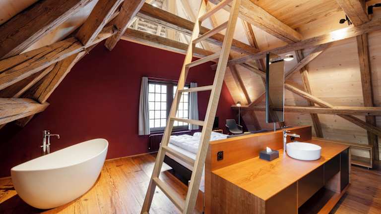 Die Unterkunft Hotel Schloss Rued - Boutique Hideaway liegt in Schlossrued, etwa 41 km vom Löwendenkmal, KKL Kultur- und Kongresszentrum Luzern sowie der Kapellbrücke entfernt. Der nächstgelegene Flughafen ist der Flughafen Zürich, der 59 km entfernt ist.