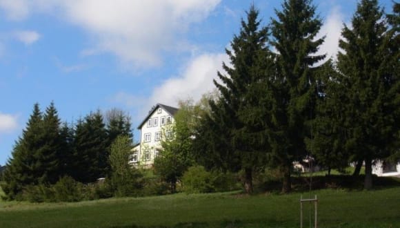 Das Hotel "Schöne Aussicht" liegt in zweiter Reihe von der Straße, direkt am Wald und daher sehr ruhig und idyllisch, aber dennoch zentral inmitten von Masserberg, unweit des Rathauses, des Badehauses und der Kirche. Direkt am Hotel führen Wander- und Radwanderwege vorbei, der Rennsteig, das Masserberger Badehaus und der Skilift sind nur wenige hundert Meter entfernt.