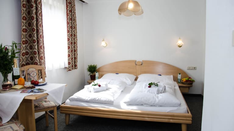 Die Zimmer sind im Tiroler Landhausstil eingerichtet. Jedes Zimmer verfügt über SAT-TV und einen Safe. Die Zimmer sind mit einem Doppelbett ausgestattet. Die Dreibettzimmer haben noch einen Schlafsessel.