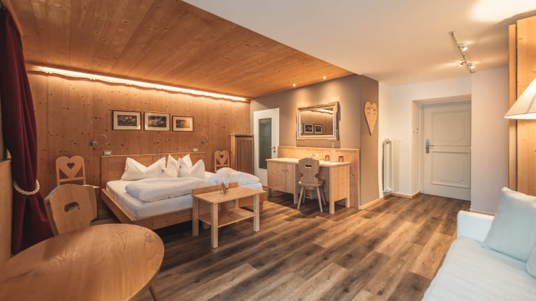 Alle Zimmer sind mit dem Fahrstuhl zu erreichen und mit Direktwahltelefon, kostenloser WLAN-Verbindung, Safe, Haartrockner und Kosmetikspiegel ausgestattet. Sie sind mit Fichten- und Eichenholz eingerichtet und verfügen fast alle über einen Balkon. Zur freien Benützung, finden Sie in Ihrem Zimmer einen Korb mit flauschigem Bademantel und Pantoffeln, Pflegeprodukte „Pure Herbs“, einen Regenschirm und für den Notfall ein Näh-Set. Auch die beiden Apartments sind mit dem Fahrstuhl zu erreichen und mit Direktwahltelefon, kostenloser WLAN-Verbindung, Safe sowie Wäsche und Geschirr, Elektroherd, Geschirrspülmaschine, Mikrowelle, Kühlschrank und Kaffeemaschine ausgestattet. Die Apartments sind ebenfalls in Fichten- und Eichenhold eingerichtet und verfügen über einen Balkon. Zur freien Benützung gibt es einen flauschigen Bademantel, Pantoffeln, Saunatuch, Pflegeprodukte „Pure Herbs“, einen Regenschirm und für den Notfall ein Näh-Set. In den Zimmern und Apartments ist das Rauchen nicht erlaubt.