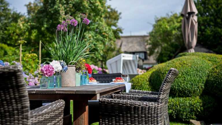 Im Hotel Seiler Hof Keitum garni können Sie sich im großen Garten entspannen und die traditionellen friesischen Strandkörbe nutzen. Darüber hinaus bietet das Hotel eine finnische Sauna und ein römisches Dampfbad, in denen Sie sich verwöhnen lassen können. In der Umgebung gibt es auch zahlreiche Möglichkeiten für Aktivitäten im Freien, wie z.B. Spaziergänge am Wattenmeer oder Fahrradtouren durch die malerische Landschaft.