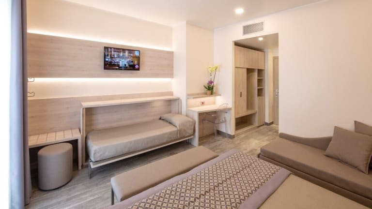 Das Hotel Sempione bietet kompakte und funktional eingerichtete Zimmer, die allen nötigen Komfort bieten. Die Zimmer verfügen über geflieste Böden und eine stilvolle Einrichtung, die eine angenehme Atmosphäre schafft. Jedes Zimmer ist mit Sat-TV ausgestattet, so dass Sie Ihre Lieblingssendungen auch während Ihres Aufenthalts genießen können.