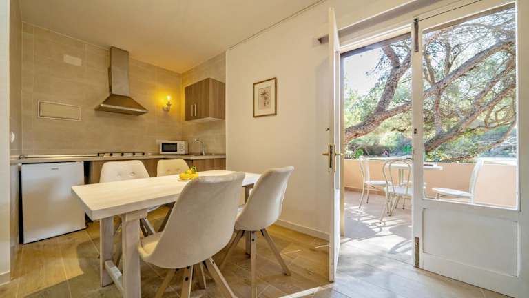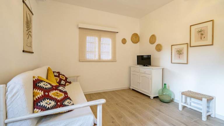 Das Ses Botges Apartment bietet eine einfache und funktionale Einrichtung. Das klimatisierte Apartment verfügt über ein gemütliches Wohnzimmer mit einem Schlafsofa und eine kleine Küchenzeile mit einem Kochfeld, einem Kühlschrank und Kochutensilien. Das Zweibettzimmer ist mit einem Kleiderschrank ausgestattet und das private Badezimmer verfügt über eine Badewanne. Zur weiteren Ausstattung gehören ein Safe und ein TV. Bettwäsche und Handtücher werden gestellt und einmal pro Woche gewechselt.