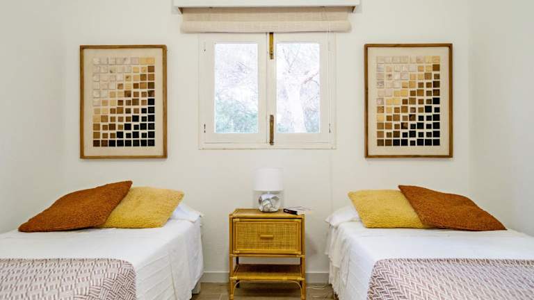 Das Apartamento Ses Botges liegt nur wenige Gehminuten vom Strand in Es Caló entfernt, einem charmanten Küstenort auf der Insel Formentera. Umgeben von üppiger Vegetation können Sie hier die Ruhe und Schönheit der Natur genießen. In der Nähe des Apartments finden Sie auch verschiedene Restaurants, Bars und Geschäfte. Der Strand in Platja de Migjorn, bekannt für sein kristallklares Wasser und seine entspannte Atmosphäre, ist nur 8 Fahrminuten entfernt. Der Hafen La Savina und die Fährstation, die eine Verbindung zur Nachbarinsel Ibiza bieten, sind ebenfalls leicht zu erreichen und etwa 8,8 km entfernt.