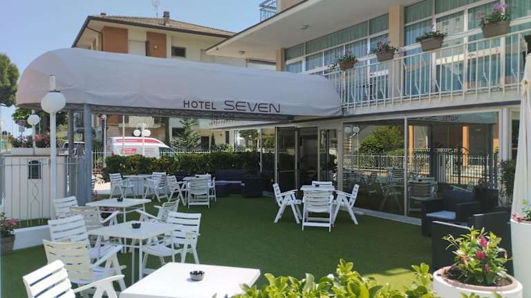 Das Hotel Seven bietet einen Kinderspielplatz, auf dem die kleinen Gäste Spaß haben können. In der Umgebung gibt es auch viele Freizeitmöglichkeiten wie Strände und die Messe Rimini Fiera.