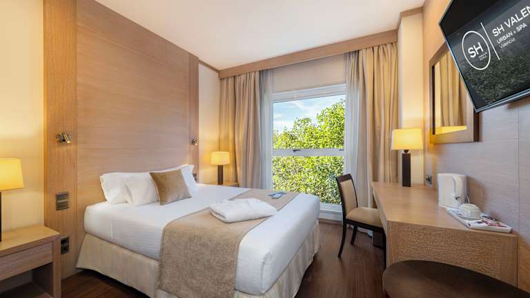 Das Hotel SH Valencia Palace bietet eine elegante Atmosphäre und umfasst 238 Zimmer, darunter 15 Junior-Suiten sowie 222 Doppelzimmer, die auf 7 Etagen verteilt sind. Die Rezeption ist rund um die Uhr besetzt und mehrsprachig (Englisch, Deutsch, Französisch). Zu den Einrichtungen zählen eine Garderobe, Gepäckaufbewahrung, Safe und Wechselstube. WLAN ist verfügbar. Das Hotel bietet auch behindertengerechte Annehmlichkeiten, Zimmer mit Klimaanlage, und einen umfassenden Service, wie einen Zimmerservice und einen Shuttlebus.