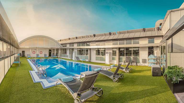 Das Freizeitangebot des Hotels umfasst Innen- und Außenpools, die zur aktiven Erholung und zum Aquatraining genutzt werden können. Auf der Sonnenterrasse stehen Liegestühle zur Verfügung. Zu den Sportmöglichkeiten gehören Golf, ein Fitnessraum und Aerobic. Der Wellnessbereich bietet verschiedene Anwendungen, darunter Massagen, Sauna und Dampfbad.