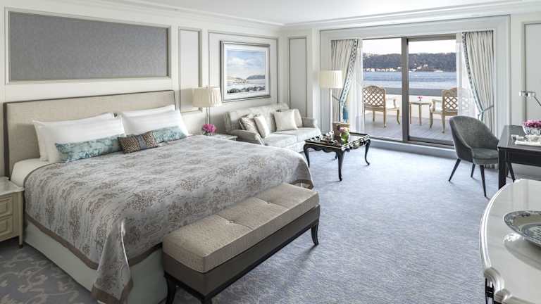 Die Zimmer im Shangri-La Bosphorus, Istanbul sind elegant dekoriert und mit modernen Annehmlichkeiten ausgestattet. Jedes Zimmer verfügt über kostenfreien Highspeed-Internetzugang, einen Flachbild-TV und eine iPod-Dockingstation. Die Suiten bieten ein separates Wohnzimmer und zwei Terrassen mit Blick auf den Bosporus. Die Marmorbäder verfügen über Fußbodenheizung, eine Badewanne und Pflegeprodukte von Acqua di Parma.