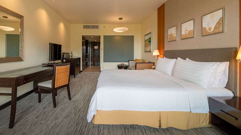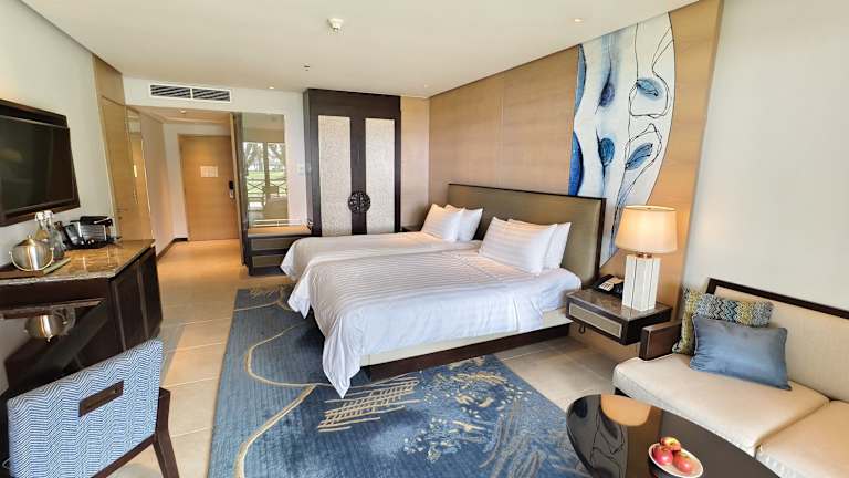 Das Resort verfügt über insgesamt 492 Zimmer, die mit Annehmlichkeiten wie Klimaanlage, Balkon oder Terrasse, Doppelbett, Safe, Minibar, Tee- und Kaffeekocher, WLAN und TV ausgestattet sind. Die Badezimmer bieten eine Dusche, eine Badewanne und eine Whirlwanne sowie einen Haartrockner und Bademäntel. Rollstuhlgerechte Zimmer und Familienzimmer sind auf Anfrage verfügbar.