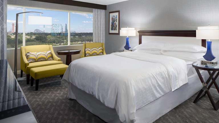 Das Sheraton Arlington Hotel liegt in Arlington, Texas, und bietet eine bequeme Lage für Gäste, die die Gegend erkunden möchten. Das Hotel ist nur 30 Fahrminuten von der Innenstadt von Dallas entfernt und bietet eine gute Anbindung an die umliegenden Sehenswürdigkeiten und Unterhaltungsmöglichkeiten. Der Vergnügungspark Six Flags over Texas ist nur 5 Fahrminuten entfernt und das Kongresszentrum Arlington erreichen Sie in nur 3 Gehminuten.