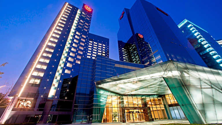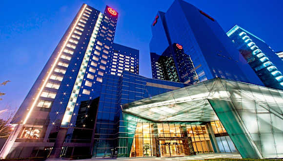 Das Sheraton Grand Beijing Dongcheng Hotel befindet sich in günstiger Lage, nur 100 m vom Beijing Global Trade Convention Centre entfernt. Der U-Bahnhof Hepingqiao ist nur 300 m entfernt und die Einkaufsstraße Wangfujing erreichen Sie nach 5 km. Das Hotel liegt auch in der Nähe von beliebten Sehenswürdigkeiten wie den Gärten und der Barstraße am Houhai-See sowie dem Einkaufsviertel Sanlitun. Der internationale Flughafen Peking ist etwa 30 Autominuten entfernt.