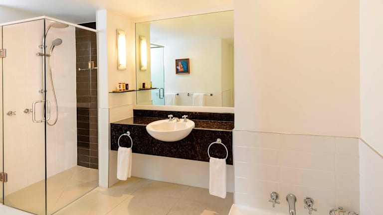 Die Villen im Sheraton Denarau Villas sind liebevoll gestaltet und bieten den Gästen eine komfortable und luxuriöse Unterkunft. Jede Villa verfügt über einen Wohnbereich, eine voll ausgestattete Küche mit Kochfeld, Kühlschrank und Geschirrspüler sowie einen Essbereich. Zur Ausstattung gehören auch Wäschemöglichkeiten, ein Safe, ein Schreibtisch und kostenfreies WLAN. Die Badezimmer sind mit einer Dusche, einer Badewanne, einem Haartrockner und kostenlosen Pflegeprodukten ausgestattet. Hausschuhe und ein kostenfreies Zahnpflegeset werden ebenfalls zur Verfügung gestellt.