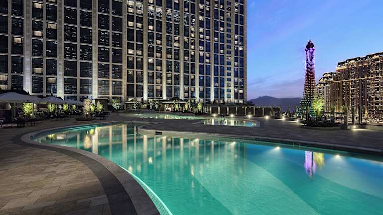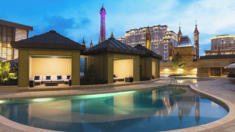Das Sheraton Grand Macao Hotel bietet seinen Gästen eine Vielzahl von Freizeitmöglichkeiten. Entspannen Sie am Außenpool oder genießen Sie eine Wasserrutsche für zusätzlichen Spaß. Für aktive Gäste steht ein Fitnessstudio zur Verfügung. Der Wellnessbereich bietet eine Vielzahl von Entspannungsmöglichkeiten, darunter eine Sauna, ein Dampfbad, einen Whirlpool und verschiedene Massageanwendungen. Ein Kinderpool und ein Spielplatz sorgen für Unterhaltung für die kleinen Gäste.