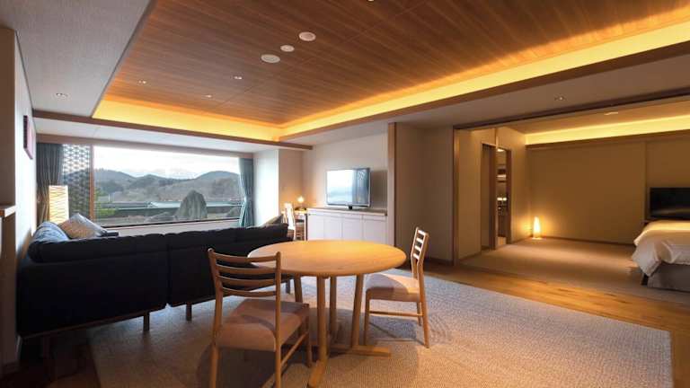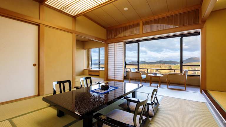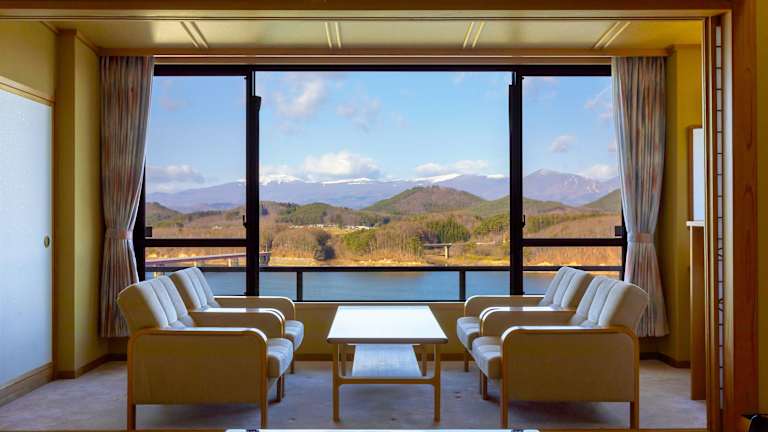 Das Hotel Shion in Morioka bietet seinen Gästen ein einzigartiges Erlebnis mit einem natürlichen Thermalbad und herrlichem Seeblick. Die Zimmer sind im traditionellen japanischen Stil mit Futonbetten oder im westlichen Stil mit normalen Betten gestaltet. Das Hotel bietet auch einen kostenlosen Abholservice vom Bahnhof Morioka Shinkansen. WLAN ist in den öffentlichen Bereichen kostenlos verfügbar. Entspannen Sie im öffentlichen Badebereich oder gönnen Sie sich eine wohltuende Massage im hoteleigenen Entspannungsalon. Das Hotel liegt in der Nähe des Sees Gosho und bietet eine malerische Umgebung. Genießen Sie ein köstliches japanisches Kaiseki-Abendessen und ein Frühstücksbuffet im Hotel.