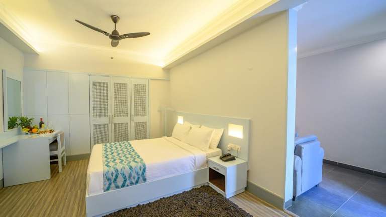Im Restaurant The Palms können Sie indische, kontinentale und chinesische Küche genießen. Das Restaurant bietet einen Blick auf den Außenpool und sorgt für eine angenehme Atmosphäre beim Essen. In der Loungebar können Sie eine Auswahl an Cocktails, alkoholfreien Getränken und Fingerfood genießen. Ein Zimmerservice steht ebenfalls zur Verfügung.