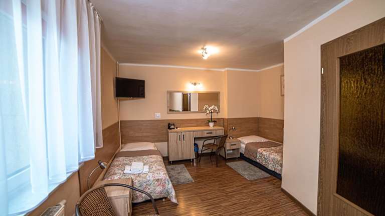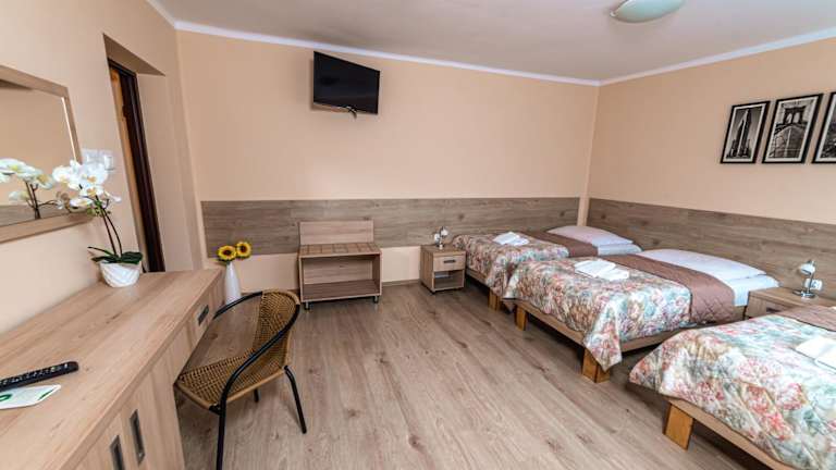 Das Hotel Skaut liegt in einer ruhigen Umgebung im Schlesischen Kultur- und Erholungspark. Diese grüne Oase bietet eine ideale Umgebung zum Entspannen und Erholen. Das Hotel befindet sich 2 km vom Zentrum von Chorzów und 5,5 km vom Zentrum von Katowice entfernt. In der Nähe befinden sich der Schlesische Zoologische Garten und das Schlesische Planetarium, die mit dem Auto in nur 7 Minuten erreichbar sind. Der Bahnhof Chorzów Miasto ist 2 km entfernt und die nächste Bushaltestelle liegt nur 400 m vom Hotel entfernt.