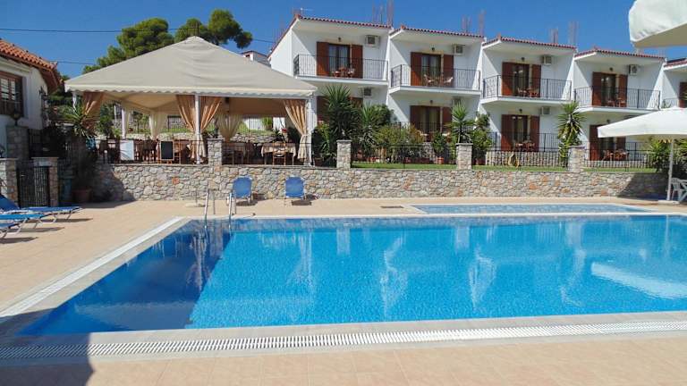 Das Hotel Skiathos Diamond in Kolios ist der ideale Ort für einen entspannten Urlaub inmitten der Natur. Die geräumigen Zimmer mit Balkon bieten einen herrlichen Ausblick auf die umliegenden Hügel. Genießen Sie den Swimmingpool und das Kinderbecken sowie die griechische Küche in der hoteleigenen Taverne. Die zentrale Lage ermöglicht es Ihnen, die Insel Skiathos zu erkunden. WLAN steht Ihnen in allen öffentlichen Bereichen kostenfrei zur Verfügung.