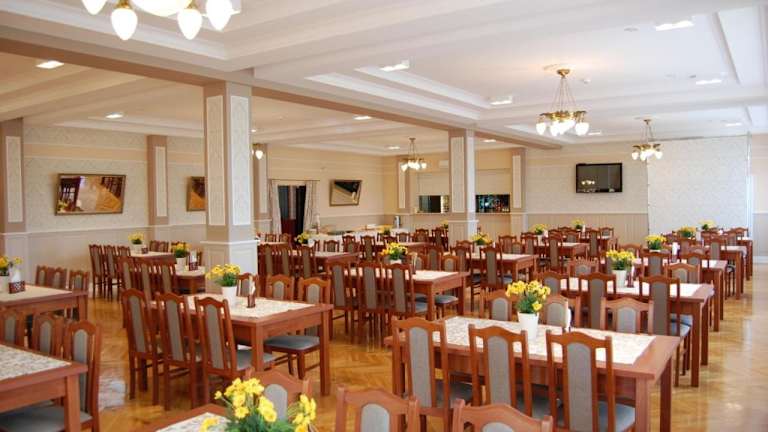 Im Hotel Słupsk erwartet Sie jeden Morgen ein leckeres Frühstücksbuffet im Restaurant. Hier finden Sie eine große Auswahl an Speisen, um gestärkt in den Tag zu starten. Am Abend können Sie in der Bar des Hotels bei einem Drink entspannen und den Tag gemütlich ausklingen lassen.