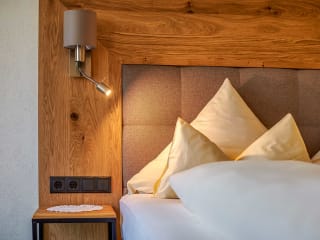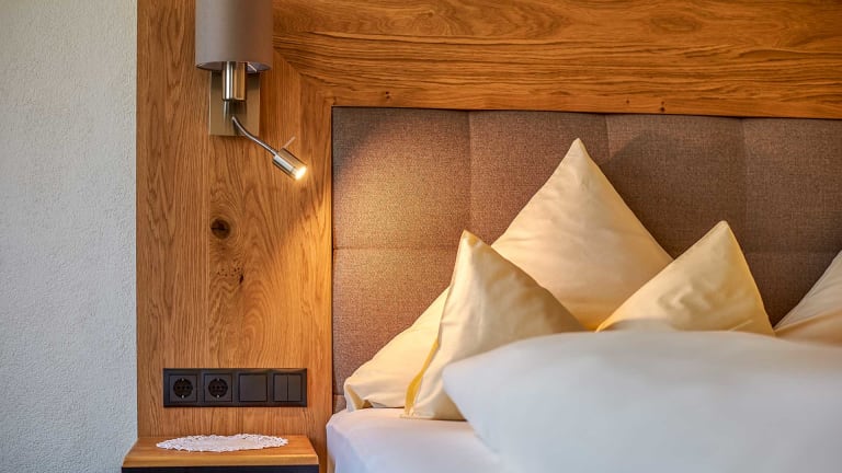 Die Zimmer im Hotel Sonnhof sind großzügig konzipiert und liebevoll eingerichtet. Helle Holzmöbel, warme Farben und durchdachte Details schaffen eine behagliche Atmosphäre. Fast alle Zimmer verfügen über einen eigenen Balkon, der einen herrlichen Blick auf die umliegende Bergwelt eröffnet. Hier lässt sich der Tag entspannt beginnen oder in aller Ruhe ausklingen – mit dem Sonnenaufgang über den Gipfeln oder dem Glühen der Berge in der Abenddämmerung.