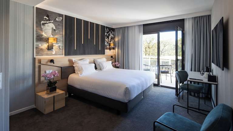 Die klimatisierten Zimmer im Mouratoglou Hotel & Resort sind elegant dekoriert und bieten ein komfortables Ambiente. Jedes Zimmer verfügt über Annehmlichkeiten wie einen Flachbild-Sat-TV, eine Minibar und einen Wasserkocher. Das private Badezimmer ist mit Pflegeprodukten und einem Haartrockner ausgestattet. Genießen Sie den Komfort und die Gemütlichkeit dieser stilvollen Unterkunft.