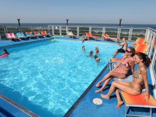 Das Hotel Sorriso hat einen exklusiven Panorama- Swimmingpool auf der 5.Etage des Hotels mit Hydromassage und angenehm beheiztem Wasser und bietet einem 360 Grad Blick auf das Meer, den Pinienwald und der Küste bis hin nach San Marino. Es verfügt über einer großen Sonnenterrasse mit Liegen und Sonnenschirm sowie über einen bunten Kinderspielplatz mit riesiger Hüpfburg. Animationsprogramm 7 Tage die Woche mit 3 Animatoren ( ein Animator spricht auch Deutsch ) mit Mini Club, Junior Club und Animation für Erwachsene. Tagsüber Animation mit vielen verschiedene Aktivitäten für die ganze Familie am Strand und am Swimmingpool und abends im Hotel mit Themenfesten, Spielabende, Gruppentänze, Baby Dance, Karaoke, Live Music und vieles mehr. In unmittelbarer Nähe des Hotel Sorriso gibt es ein großes Unterhaltungsangebot in Lido di Classe: Wasserrutschen, Tennis, Golf, Bocciabahn, Spielsalon, Kino, Windsurf, Manege, Basketball, Beach-Volleyball, Rollschuhbahn, Minigolf, Nachtlokale und vieles mehr.