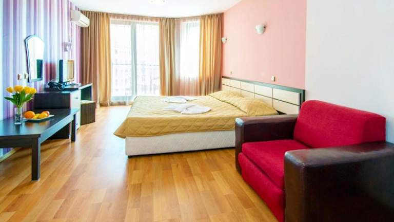 Die Zimmer im Hotel South Beach sind geräumig und bieten einen eigenen Balkon mit Blick auf die Gärten oder das Schwarze Meer. Jedes Zimmer verfügt über Klimaanlage, Kabel-TV und schallisolierte Fenster für einen ruhigen und erholsamen Schlaf.