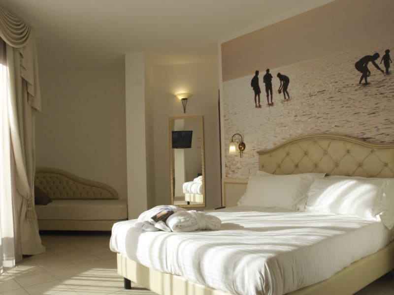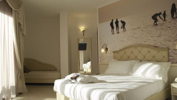 Es verfügt über Zimmer und Suiten mit 32-Zoll-Satellitenfernsehen (inklusive Mediaset Premium-Paket), WLAN, Safe und Balkon. Zur Auswahl stehen Zimmer in der Kategorie Classic oder Superior: Die Classic-Zimmer beinhalten die Benutzung eines Internetpoints in der Hotelhalle. Das Zimmer in der Ausführung Deluxe beinhaltet (in den Sommermonaten) die Benutzung des Hotelstrandes, einen Softdrink aus der Minibar sowie die Benutzung des WLANs im Zimmer. Auf Anfrage kann ein Zimmer mit Badewanne der Marke Teuco Hidrosylence gemietet werden.