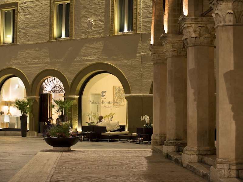 Erleben Sie einen unvergesslichen Aufenthalt im Palazzo Bontadosi Hotel & Spa im Herzen von Montefalco. Genießen Sie die authentische Atmosphäre innerhalb der historischen Stadtmauern und entspannen Sie im exklusiven Spa mit beheiztem Pool. Die schallisolierten und klimatisierten Zimmer bieten kostenloses WLAN und einen Plasma-Sat-TV. Entdecken Sie die Kunstgalerie im Erdgeschoss des Hotels und lassen Sie sich im mittelalterlichen Spa mit Dampfbad und Hydrotherapie-Duschen verwöhnen. Ihr Fahrzeug können Sie kostenfrei am Hotel parken. Die günstige Lage ermöglicht es Ihnen, die umbrischen Städte bequem zu erkunden.
